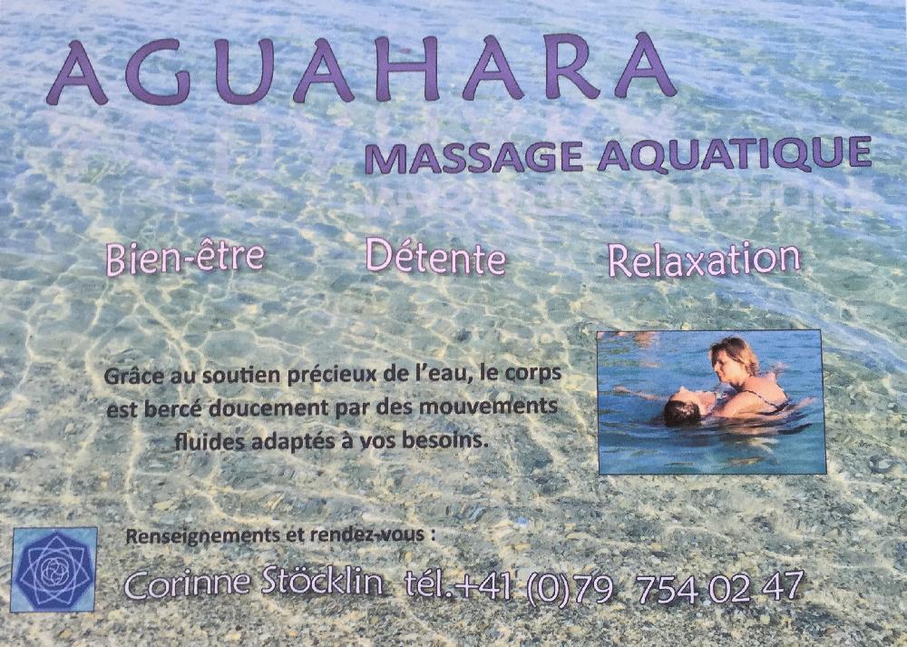 06. Mai 2016 Infinite flowing massage aquatique conscient L' eau détend et libère les tensions physiques et psychiques. L'Être humain est constitué de plus de 70% d' eau. Ainsi, être dans l'eau, soutenu par des mouvements précis et adaptés aux besoins de chaque personne,crée un équilibre et une détente profonde. Des prises de conscience importante qui vous aident à choisir quelle décision/ direction prendre dans votre vie peuvent se manifester. Une très belle connexion avec l'eau! Pour votre plaisir et détente! Aide à soulager: L'Infinite flowing massage est une expérience spécialement bénéfique et joyeuse pour les femmes enceinte car le lien entre la maman et le bébé est renforcé. Pour l'Infinite flowing la piscine doit être 90-120cm de profondeur, la température idéalement entre 30 et 35°C En Suisse romande: les rdvs sont à fixer assez à l' avance! Prix: CHF 140.- par séance L' Infinite flowing massage a été développé avec l' aide précieuse des différents aspects que l' eau nous offre. Les qualités et le pouvoir de l'eau sont connu depuis fort longtemps. Les vibrations, les énergies, ainsi que la mémoire de l' eau ont également été prouvé scientifiquement. Pourquoi je suis si convaincue du massage conscient Infinite flowing Après plusieurs années de douleurs physique ayant également touché mon Bien-être psychique les médecins m'ont finalement diagnostiqué la fibromyalgie. De longues recherches pour soulager ces douleurs ont suivi. Finalement, c'est grâce à l'Infinite flowing que j' ai trouvé un soulagement vraiment satisfaisant et durable. En février 2016 et 2017 j'ai eut le privilège de suivre la formation d'Infinite flowing conscious water massage aux îles Andaman en Inde, avec Mme Simone Pfirter et M. Sergio Calancha (tous deux enseignants certifiés). Aujourd'hui j' ai le plaisir de faire moi-même ce massage aquatique précieux. |